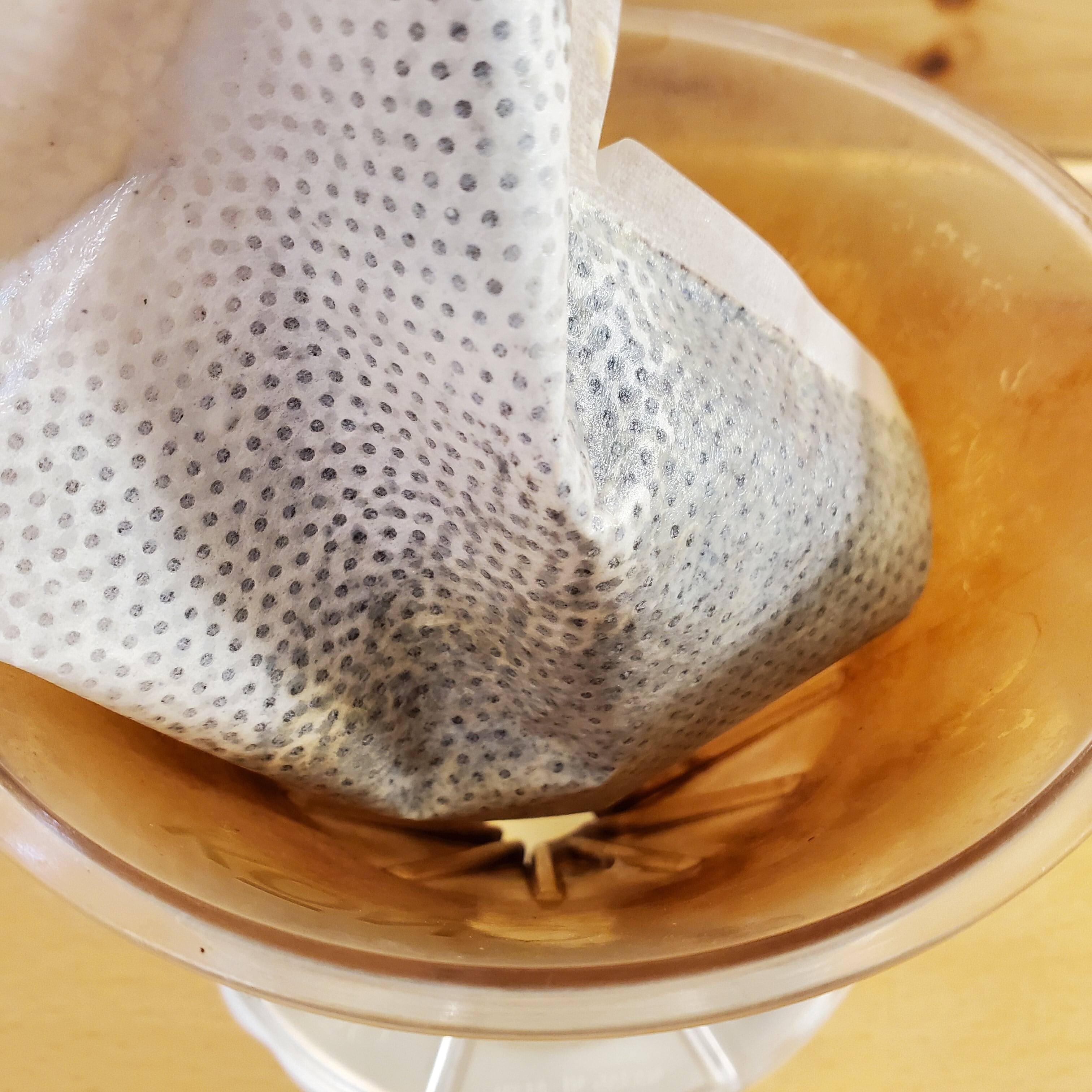 ※写真5枚目は、抽出が終わったコーヒーパック。水分を取り込み少し膨らみます。つくるときは大きい口の容器をご利用ください。